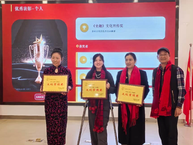 掌声与喝彩声中,年会迎来激动人心的 “荣耀时刻・优秀表彰” 环节。为表彰在文化宣传领域作出突出贡献的会员,现场颁发 “《史趣》文化宣传奖” ,孙海彦、邱丽文、吴红凭借出色表现获此殊荣。颁奖嘉宾为获奖者颁奖,全场掌声雷动,向三位文化传播使者致以敬意。
