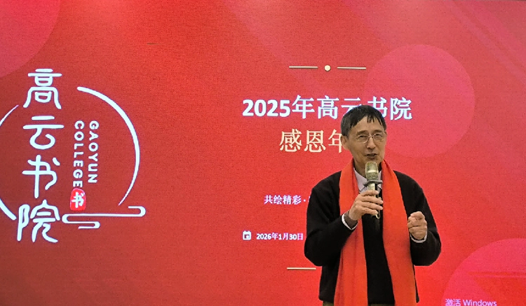 随后,滕锡强先生代表书院作未来展望发言。他对高云书院的十六字文化精髓:“高朋满座,胜友如云。以德为本,星辰大海”,做了阐述和诠释,并描绘了 2026 年书院的发展规划与美好蓝图,让在场嘉宾满怀憧憬。